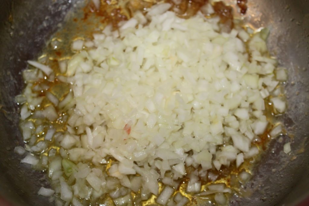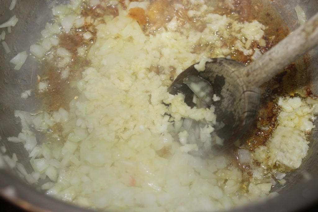 Ajoutez les 4 gousses d’ail écrasées (oui j’en ai bien 4, une est dans le presse-ail !!).