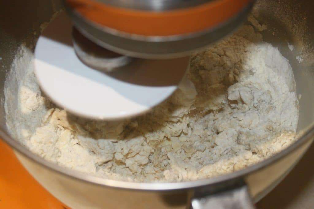 Comece por preparar a massa no dia anterior. Colocar todos os ingredientes, excepto a manteiga, num processador de alimentos.