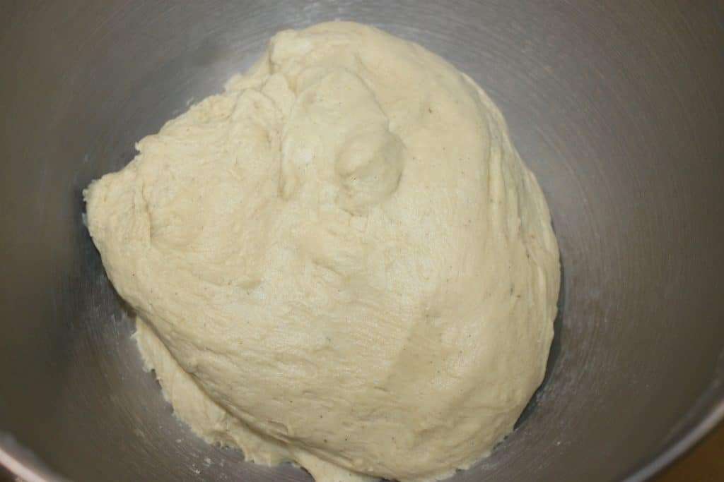 Misturar com o gancho de massa durante 5-6 minutos a baixa velocidade. A massa não deve continuar a aderir à borda interior da tigela.