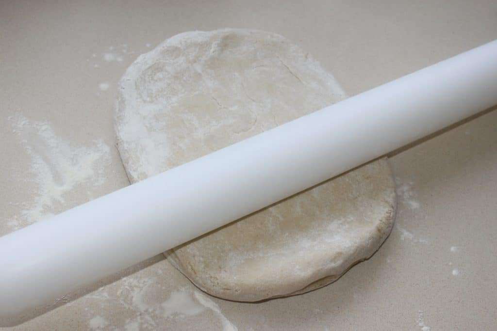 Desembrulhar a massa fria e colocá-la sobre uma superfície de trabalho levemente enfarinhada. Estenda-o para um rectângulo de cerca de 26cm por 42cm.