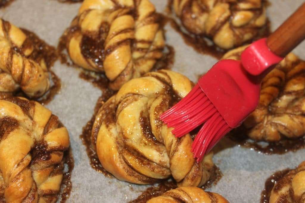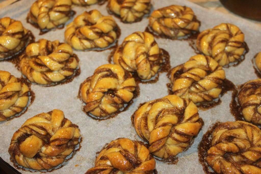 Colocar cada kanelsnurrer sobre um tabuleiro forrado com papel vegetal. Repetir este processo para todas as tiras de massa. Deixá-los inchar durante cerca de 40 minutos: quase duplicarão de tamanho.