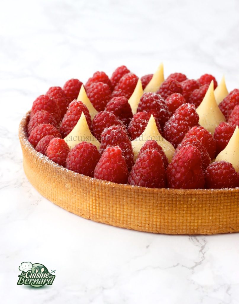 Uma pequena maravilha na boca, essa é realmente a sensação quando se morde um pedaço desta tarte. Uma massa estaladiça, um creme de amêndoa rico e macio, uma ganache de baunilha tenra e fresca e framboesas suculentas. Para esta tarte, dou-vos a minha maravilhosa receita de ganache de baunilha que desenvolvi há 7 anos e que só tinha publicado no meu primeiro livro "mes desserts" (Flammarion 2014). Nada de complicado aqui e um visual que irá deliciar os seus convidados para a sobremesa em pleno Verão!