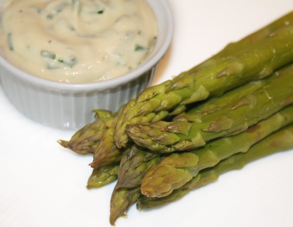 - Plonger une asperge encore tiède dans la sauce! Le printemps est là!