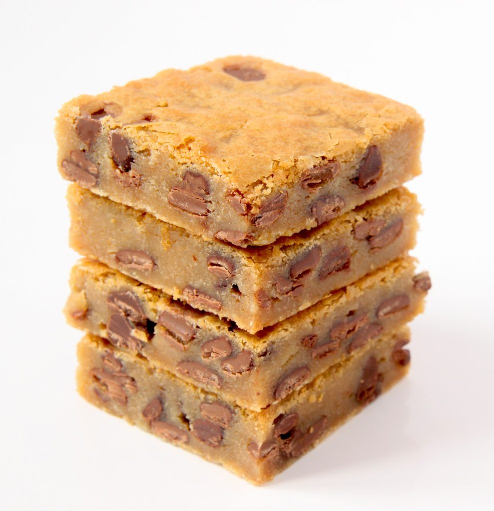 Encore une recette de cookies Bernard?? Oui, je l’avoue, j’ai ma phase régressive, mais je ne peux résister devant ces petits gâteaux. Promis, c’est la dernière recette de cookies avant un petit moment (sauf cas de force majeure!). Ces « choc chip bars », ressemblent plus à des « blondies », ces brownies sans chocolat. La pâte, au lieu d’être cuite en boulettes, l’est dans un plat, puis est coupée en parts. Bien sûr, on peut en faire des cookies classiques, mais cuite dans le plat, elle s’adressera aux amoureux de pâte pas trop cuite. Je conserve précieusement cette recette depuis 20 ans, depuis qu’une famille américaine chez qui je restais pour un séjour linguistique, me l’avait donnée. Gardez-la dans un coin, car ces « choc chip bars » vont vous régaler!