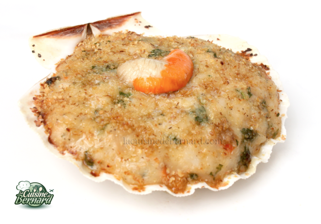 Je suis un vrai fan de coquilles Saint Jacques ! Chaque fois que je vais en Bretagne voir mes parents, ma maman m’en prépare quand c’est la bonne saison, c’est à dire maintenant. Je vous donne ici deux recettes. Enfin plutôt une recette et une méthode de cuisson. La première est donc la recette familiale des coquilles Saint Jacques à la brestoise, préparées dans notre famille par Marie. Un véritable délice. On pourrait penser que l’on perd la saveur subtil de la chair des Saint Jacques, mais c’est tout le contraire qui se produit. Le tout est savoureux, totalement irrésistible. La deuxième est une méthode très simple de cuisson au four qui sublime véritablement les coquilles. Du sel, du poivre, une bonne rasade de beurre salé et le tour est joué.