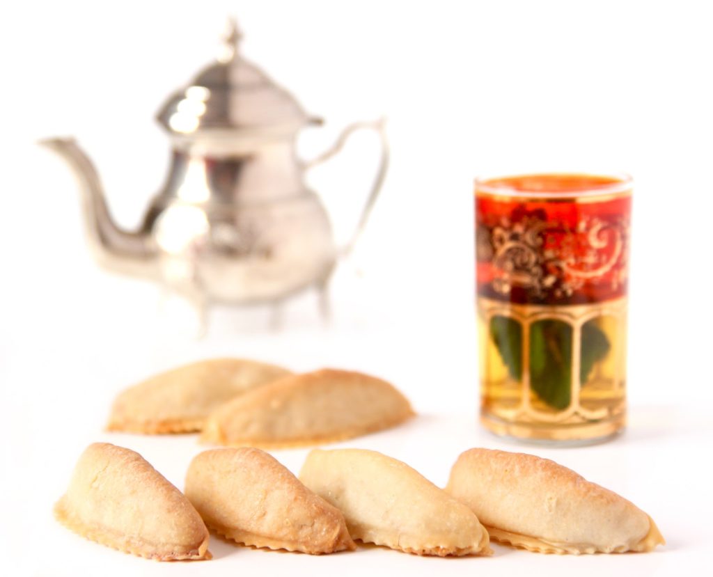 Je vous avais déjà présenté une recette de cornes de gazelles. Mais je voulais surtout voir et apprendre la technique des cornes de gazelles marocaines, avec leur pâte si fine, fine comme du papier, un peu craquante pour dévoiler le coeur aux amandes, cannelle et fleur d’oranger si tendre. C’est au Maroc, sur place que je suis parti à la rencontre de Touria, Lalla Myriam et de sa maman, Lalla Fatima, vraie grand-mère comme on les adore: détentrices des secrets de la cuisine de leur pays. Cela faisait des années que je cherchais à aller au Maroc pour cuisiner. La patience a été récompensée car cela a largement dépassé toutes mes attentes…! Vous découvrirez vite toutes les recettes que nous avons réalisées là-bas: pastilla, harira, crêpes mille trous, poulet au citron, mkharka, couscous berbère… C’est avec une joie non dissimulée que je partage avec vous, avec la complicité de Touria, Lalla Fatima et Lalla Myriam, cette première recette: les cornes de gazelles. Cette recette est absolument parfaite et se dégustera, comme il se doit, avec un thé à la menthe…Je vous donne ici la recette telle que l’a apprise Lalla Fatima de sa grand-mère, qui elle-même l’avait apprise de sa grand mère etc… Il m’a été précisé qu’il était important d’utiliser du sucre en morceaux plutôt que du sucre en poudre. Mais surtout (et ça j’ai bien vu que c’était important), qu’il fallait soi-même monder les amandes. Le fait de les plonger dans l’eau bouillante pour les éplucher, leur confère un moelleux que l’on ne trouve jamais… Après, par souci de commodité, on préférera peut-être utiliser de la poudre d’amandes et du sucre en poudre. Mais si l’on veut la perfection de ces petites cornes de gazelles (qui s’appellent « sabots de gazelles » en arabe…), vous avez tous les éléments dans la recette ci-dessous!