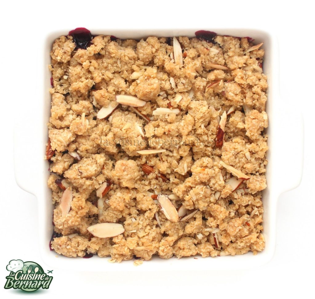 • Faites cuire à 180°C une vingtaine de minutes (ou plus) pour avoir un crumble bien doré. À déguster tiède…
