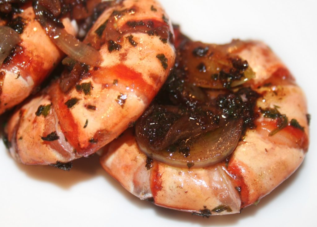 Les photos ne rendent pas justice à ce plat exquis! Voici la recette des Gambas flambées de Nadine. Une recette rapide d’exécution, simple et surtout vraiment délicieuse. La touche d’originalité de cette recette, tient au fait que Nadine nous a flambé ses gambas avec du Porto. Et le résultat est surprenant! Une petite note sucrée qui accompagne à merveille l’ail, l’oignon et le persil et qui souligne idéalement le goût subtil de ces crustacés.