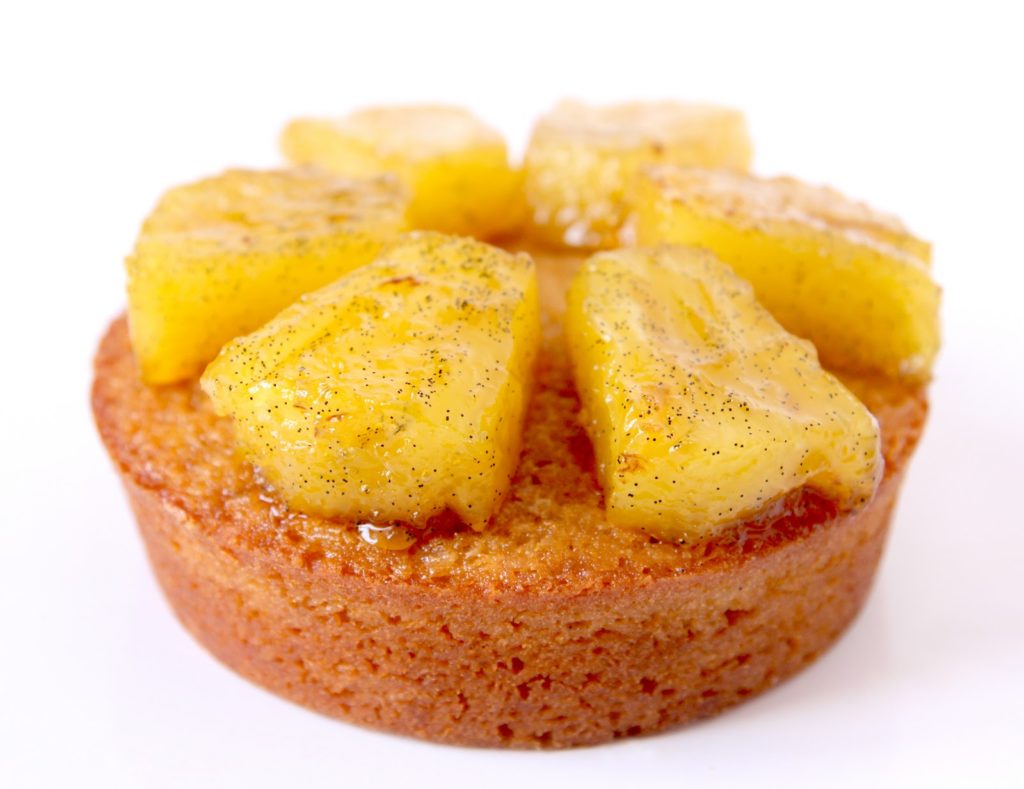 Je continue dans l’exotisme des desserts après les tartelettes à la mangue! En fait ce gâteau à la noix de coco vient d’un accident. En voulant réaliser le pralin de coco pour les tartelettes, j’ai tout d’abord raté ma première version. J’ai obtenu une pâte molle caramélisée à la noix de coco. Plutôt que de la jeter, j’ai ajouté un peu au pif les ingrédients classiques des gâteaux et j’ai obtenu de délicieux petits gâteaux à la noix de coco sur lesquels j’ai ajouté quelques morceaux d’ananas caramélisés à la vanille. On pourra bien sûr directement ajouter l’ananas dans la pâte, mais je trouvais simplement plus joli de les mettre dessus!