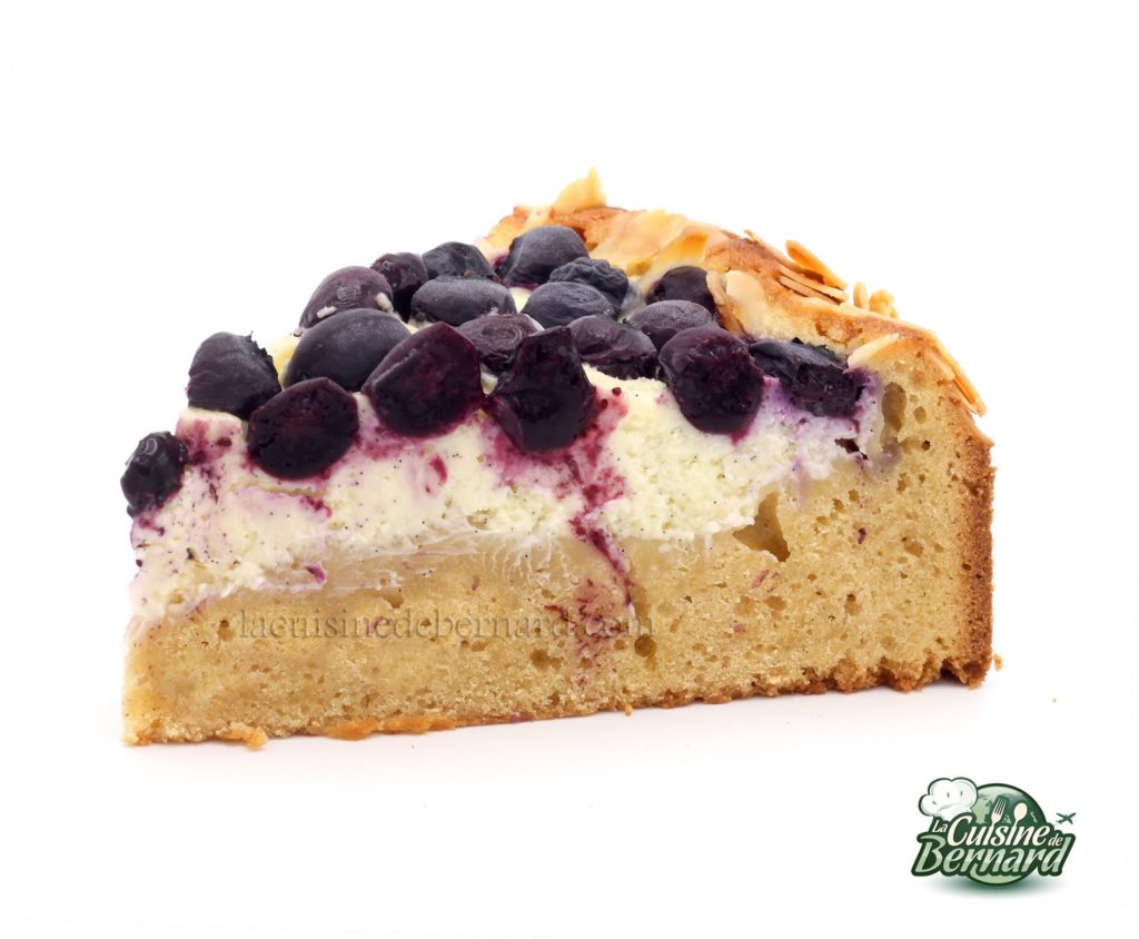Un gâteau prêt à passer au four en 10 minutes. C’est vraiment simple et rapide pour un résultat riche et délicieux. Je ne l’ai pas mis sur la photo, mais vous pourrez le servir avec un coulis de myrtilles, ce sera encore meilleur. Ce gâteau est un peu comme un mélange de quatre quarts et de cheesecake. Il est surmonté de myrtilles qui vont cuire avec. Vous pouvez en mettre plus que sur les photos, j’ai d’ailleurs déjà changé les proportions pour que vous en ayez plus. Les myrtilles fraiches ont tendance à rester assez similaires avant et après cuisson, et vous pourrez mettre sans souci des myrtilles congelées qui feront plus une sorte de coulis naturel. Parfait pour un goûter décadent !