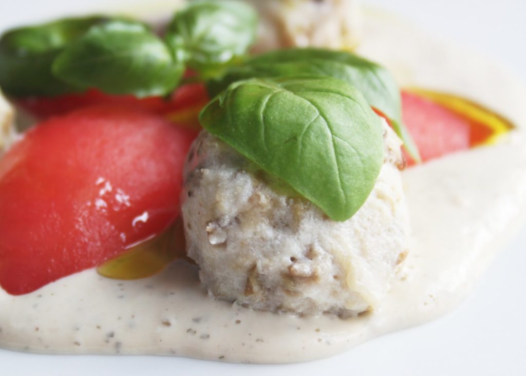 Je crois que de toutes les recettes que je connais, celle-ci est l’une des plus délicates en bouche. Ce ne sont pas de vrais gnocchis, mais plutôt des boulettes composées d’aubergines rôties, de ricotta, de parmesan et de petits cubes d’aubergines frits. Elles reposent chaudes, sur un lit de crème de sésame, avec des pétales de tomates tièdes, des feuilles de basilic frais et un filet d’huile d’olive. Le tout donne une sorte de recette miracle, qui prend forme quand tous les ingrédients sont rassemblés. Les gnocchis fondent en bouche, et les textures sont soyeuses, douces et raffinées. J’ai mangé ce plat dans le restaurant AK à Sao Paulo. Ce plat est une invention de la chef Andrea Kaufmann (d’où les initiales), mais elle a fermé son restaurant, pour en ouvrir un autre, dans un autre quartier. Mais au passage, elle a livré la recette de son plat fétiche.