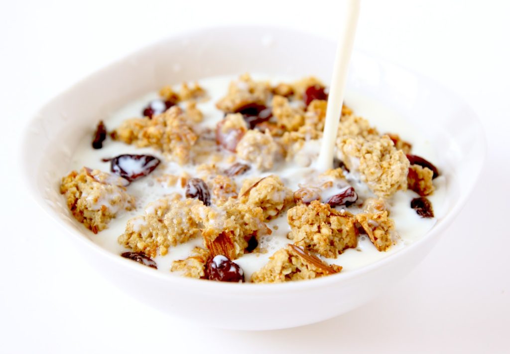 - Les morceaux vont devenir parfaitement croustillants. Conserver dans une boite hermétique. Consommer ce granola avec du lait bien froid en ajoutant des raisins secs, des canneberges séchées ou bien encore des « chunks » de chocolat!