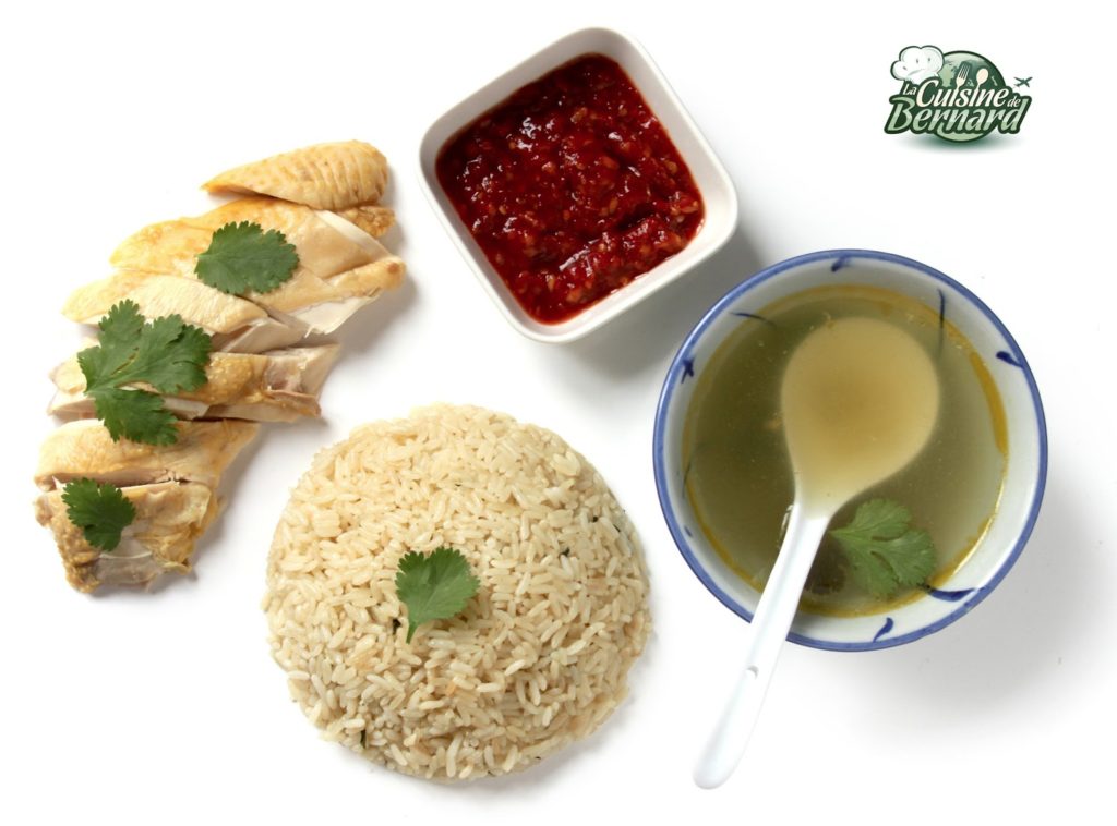 Dans mon dernier voyage culinaire de Singapour, vous avez sans doute remarqué le poulet au riz (chicken rice donc). Une recette simple en apparence, beaucoup plus parfumée qu’elle n’en a l’air. C’est un repas sain et vraiment original. Je mets d’ailleurs beaucoup plus de coriandre hachée sur le riz et le poulet que sur ma photo. On trouve ce plat dans beaucoup pays d’Asie, mais surtout à Singapour où il est arrivé par les chinois de la province/île de Hainan. Avec une petite sauce pimentée ou la sauce du poulet aux feuilles de pandanus, ce délicieux repas prendra toute sa dimension !