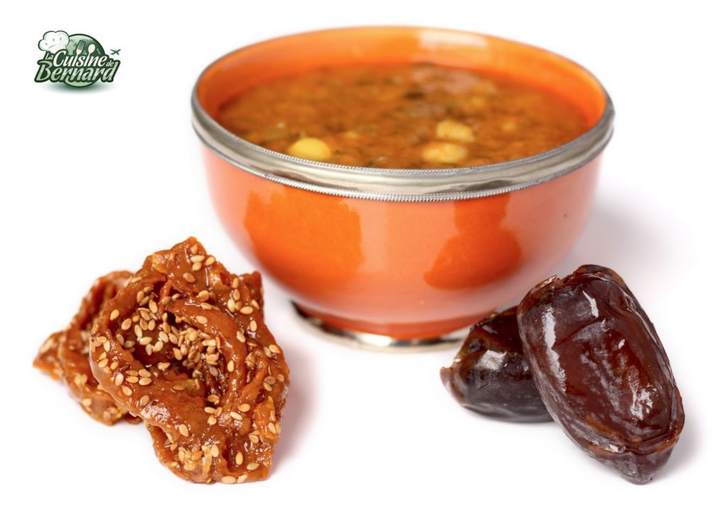 - Pour déguster la harira dans les règles de l’art, il faudra la boire avec des dattes à côté et quelques « mkharkas ». Le mélange sucré-salé est sensationnel !!