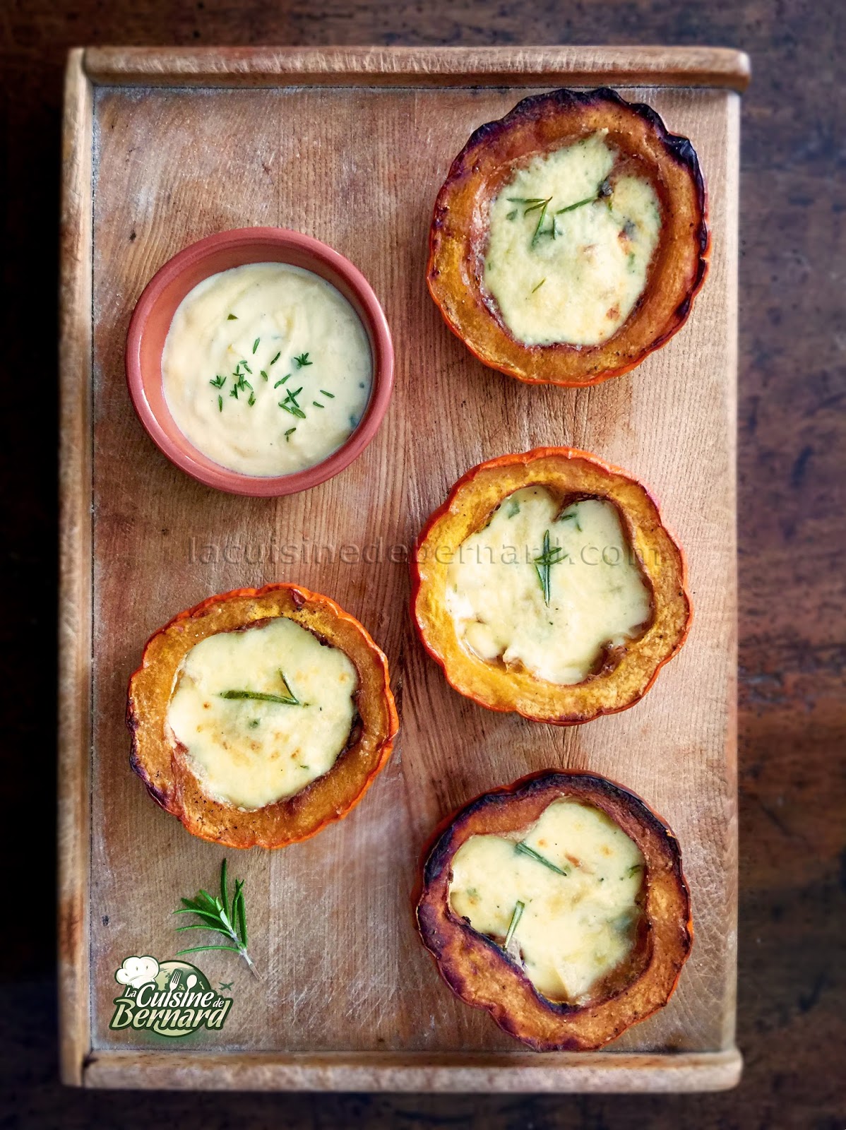 J’adore l’automne pour toutes les bonnes choses qui vont avec. Surtout pour les courges que l’on trouve beaucoup plus facilement qu’il y quelques années de façon plus variée. Cette fois je vous propose les jack be little qui sont de mini-citrouilles terriblement mignonnes ! Je les achète et j’hésite toujours à les cuisiner. J’en profite quelques jours en les mettant dans la cuisine pour décorer. En rentrant à la maison après une froide journée, je trouve cela réconfortant. Mais ça l’est encore plus de les dévorer. Je les rôtie au four et je fais avec une crème d’ail très parfumée qui s’allie à la perfection à la saveur sucrée des courges. Vous pouvez les servir telles quelles ou alors en accompagnement d’une viande par exemple.