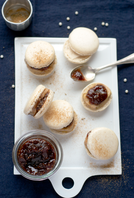 - Garnissez les macarons avec une tranche de foie gras, puis d'un peu de chutney de figues. Mettez un peu de fleur de sel puis couvrez avec un deuxième macaron. On peut tout à fait ne mettre qu'un seul macaron au lieu de deux.