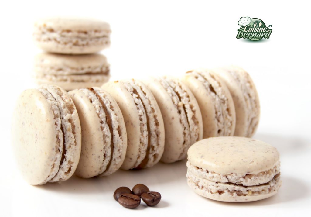 Cela fait un moment que je n’ai pas mis de recette de macarons en ligne et pourtant, ce n’est pas faute d’en faire des centaines par mois!! Que ce soit pour les ateliers que j’organise ou pour apporter à des diners, j’en fais toujours plein! J’avais cette recette depuis un moment dans un coin de ma tête et je voulais partager avec vous cette garniture très traditionnelle à la pâte d’amandes. Je reste aujourd’hui très classique dans les saveurs avec ce café-noisettes. La coque est réalisée avec de la poudre de noisettes et la garniture, avec donc cette pâte d’amandes allégée avec du beurre (!!!) et en extrait de café. Une petite recette facile de macarons qui ravira tous les amateurs de café! Et même qui ne sont pas des fanatiques, car le goût du café est très doux et se mélange parfaitement avec les noisettes.