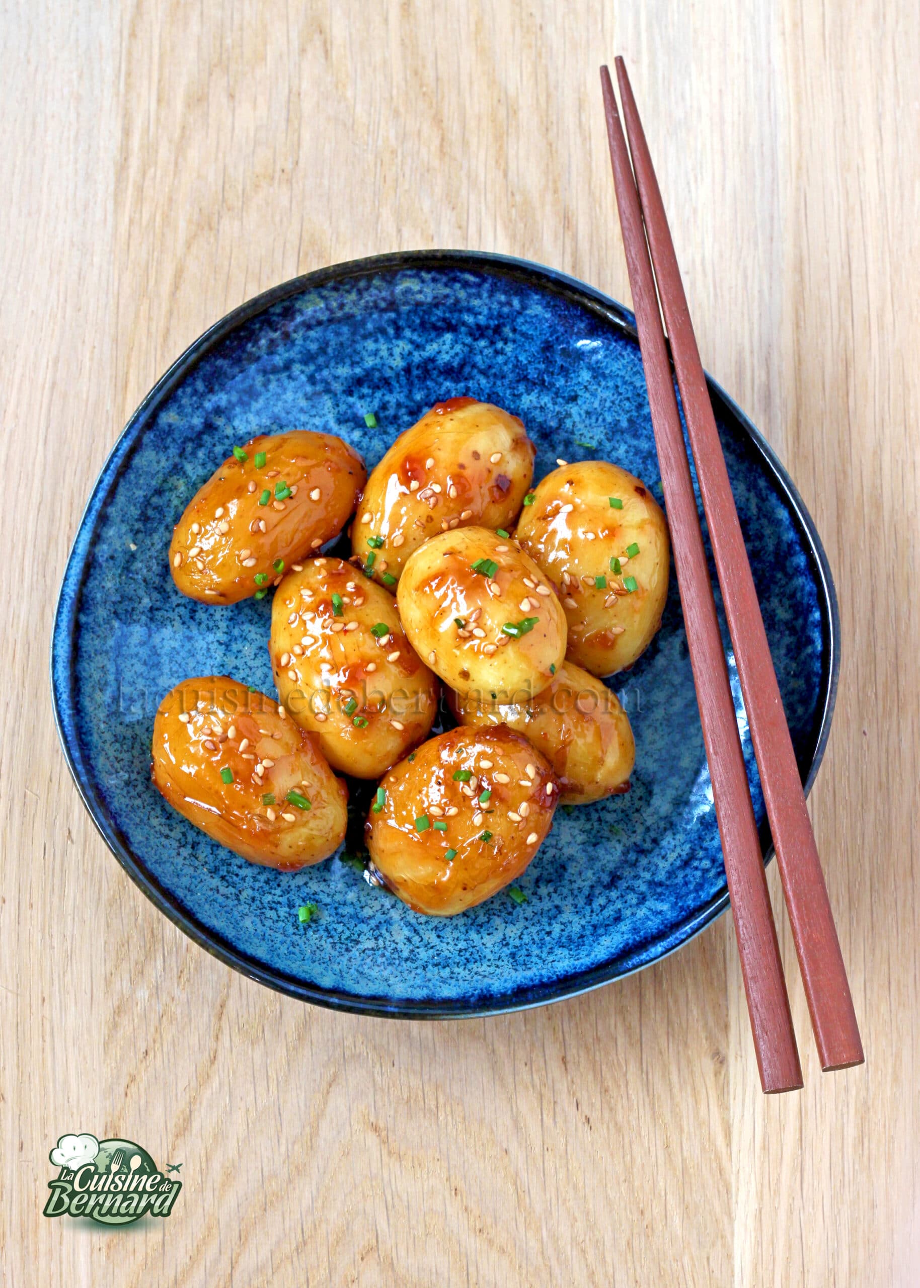 Les pommes de terre primeur ont une texture parfaite pour cette généreuse recette coréenne. Il faut en profiter à la bonne saison, à savoir dès le mois de mai et les cuisiner rapidement car elles ne se conservent que quelques jours. Ce sont de véritables trésors de nos terroirs français. Elles sont cultivées principalement dans des zones littorales ensoleillées, au sol sablonneux : Bretagne, Noirmoutier, Sud de la France. Les plus tardives nous viennent des régions du Nord : la Manche, l’Alsace et le Val de Saône. Récoltées avant leur complète maturité, elles sont commercialisées sans tarder pour garantir leur extrême fraîcheur. Ici, la sauce est délicieusement relevée, sucrée et pimentée, avec une touche d’huile de sésame au dernier moment. Elles seront parfaites pour accompagner un repas coréen, ou simplement telles quelles sur la table avec une viande. Faites bien attention, car quand on commence à plonger le nez dedans, on ne s’arrête plus !! https://www.lespommesdeterre.com/