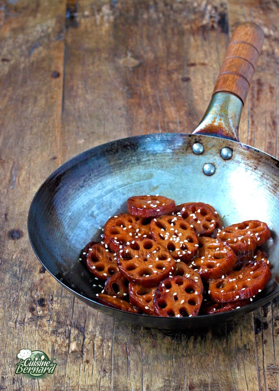 Voici une recette très classique pour accommoder les racines de lotus encore parfois très méconnues dans nos contrées. Il faut aimer la texture un peu craquante, mais cette version permettra une approche simple. Le plat est prêt en 25 minutes et donne un visuel étonnant. À servir comme accompagnement d’un plat chinois ou simplement avec du riz.