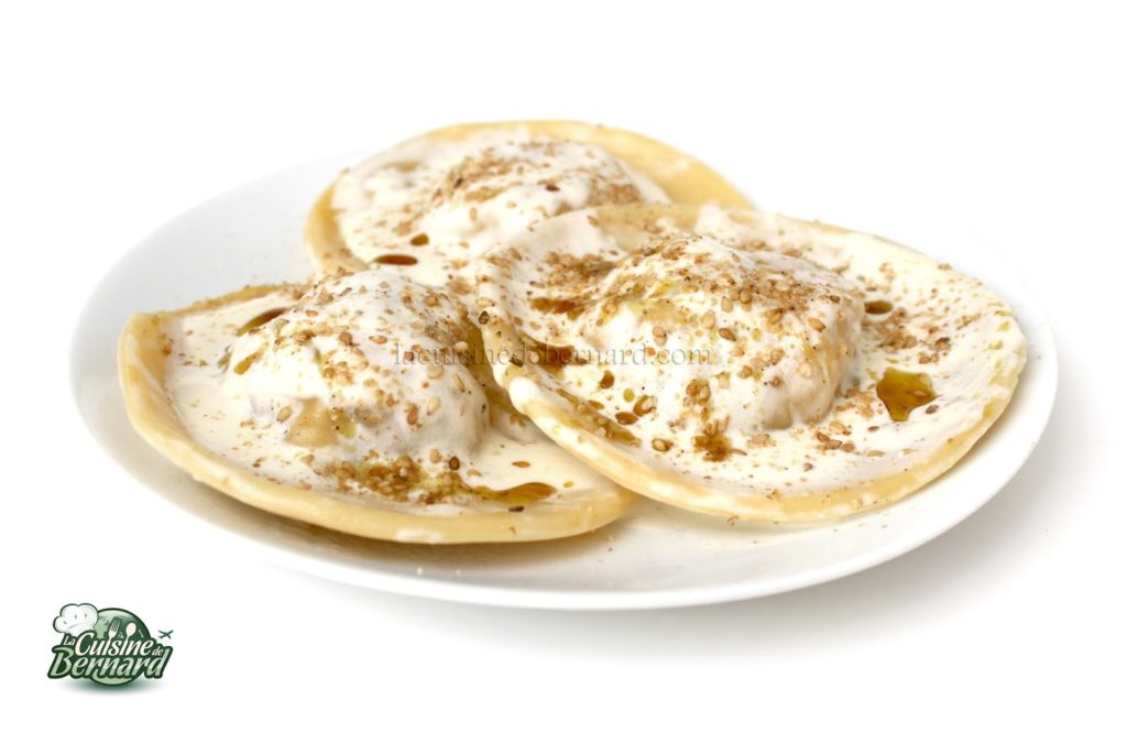 - Faites cuire dans une grande casserole d’eau bouillante salée. La cuisson dépend vraiment de degré d’humidité de la pâte. Les raviolis doivent devenir bien tendres.