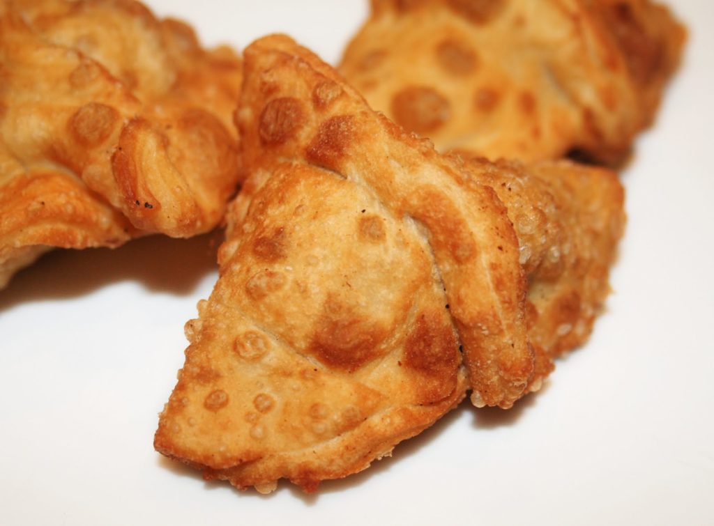 Je vous présente ici une recette de samossas. Ceux-ci sont les originaux d’Inde et sont réalisés avec une pâte « maison », à la différence des samossas réunionnais, réalisés avec des feuilles de brick (nous les verrons dans un futur proche!). Ces samossas conviennent aux végétariens et sont accompagnés d’une sauce simplissime et vraiment délicieuse à base de tamarin et d’épices.